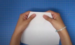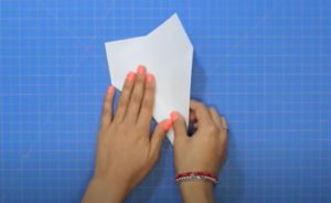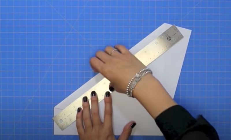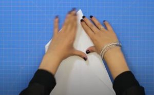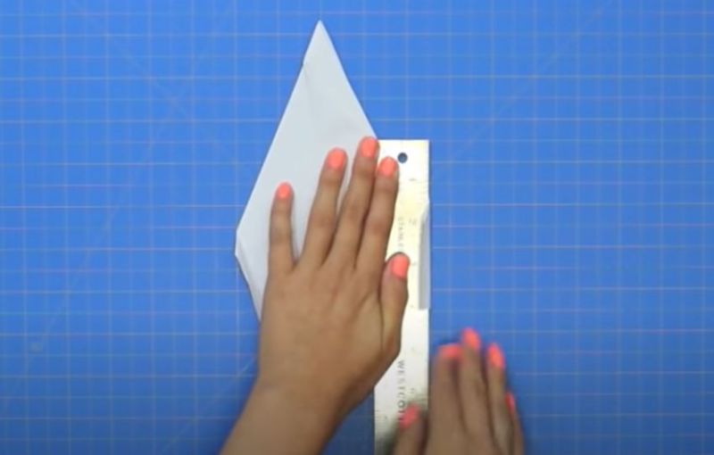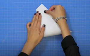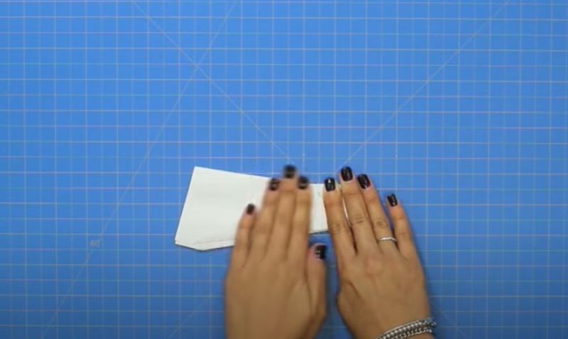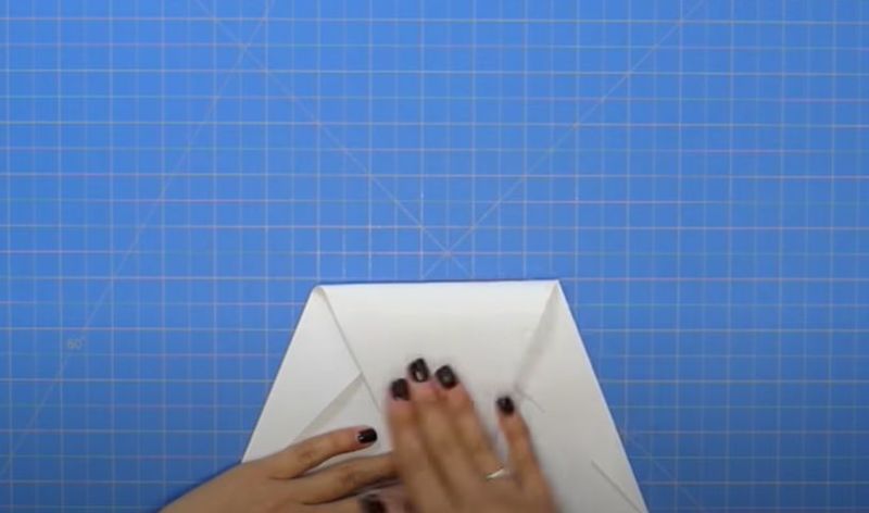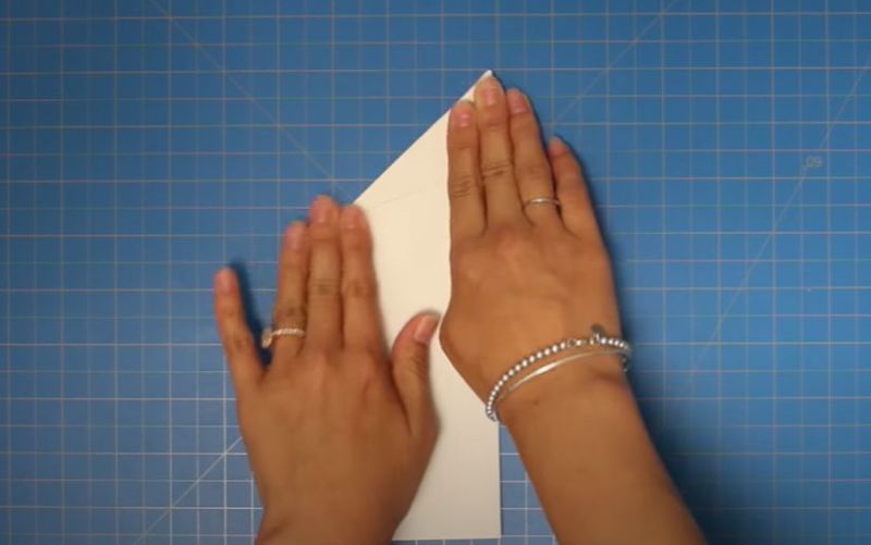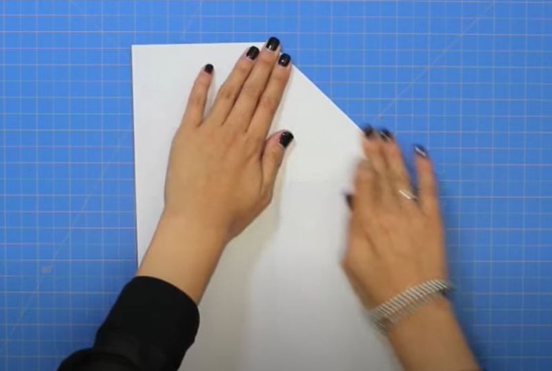 - Прегънете го наполовина и огънете двата горни ъгъла към центъра.