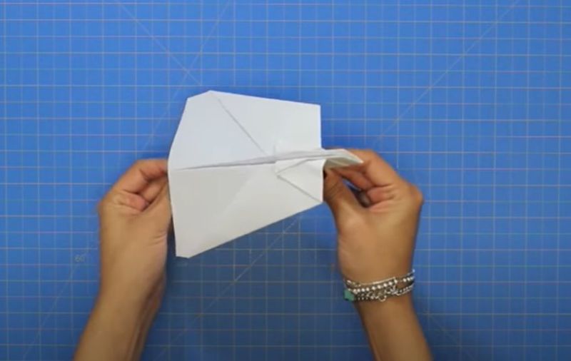 - След това обърнете самолета и сгънете горния капак.