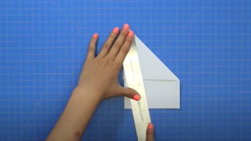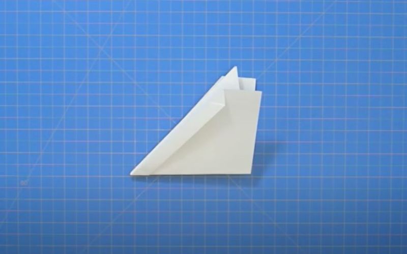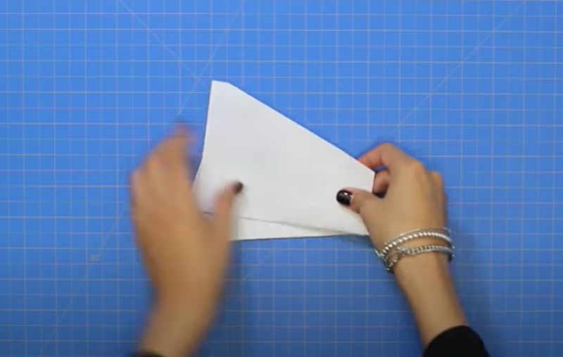- Разгънете самолета и сгънете долния десен ъгъл към центъра.