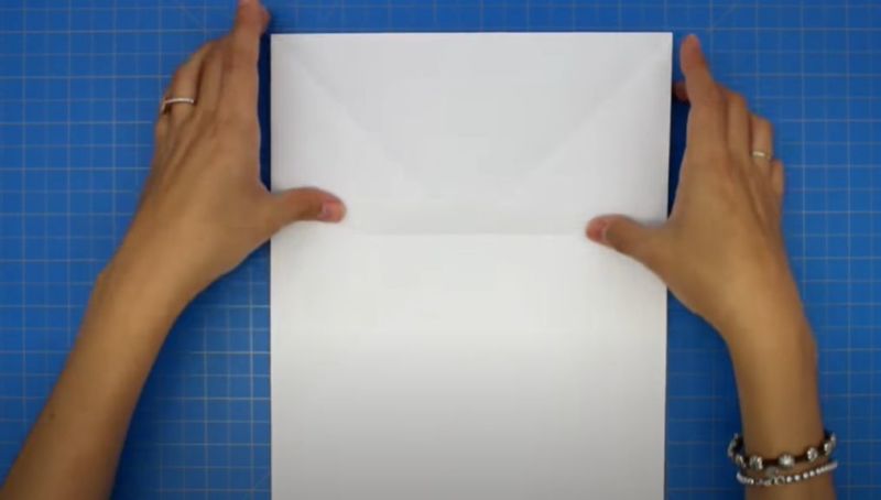 - Отворете листа и сгънете горните ъгли към центъра.