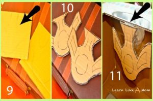 - Първо изрежете бъдещите крила от картон. Можете да нарисувате шаблон сами, стига всички части да са еднакви.