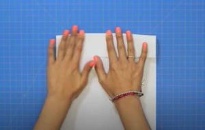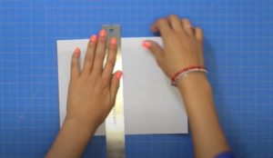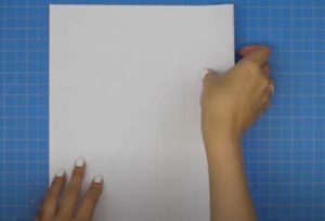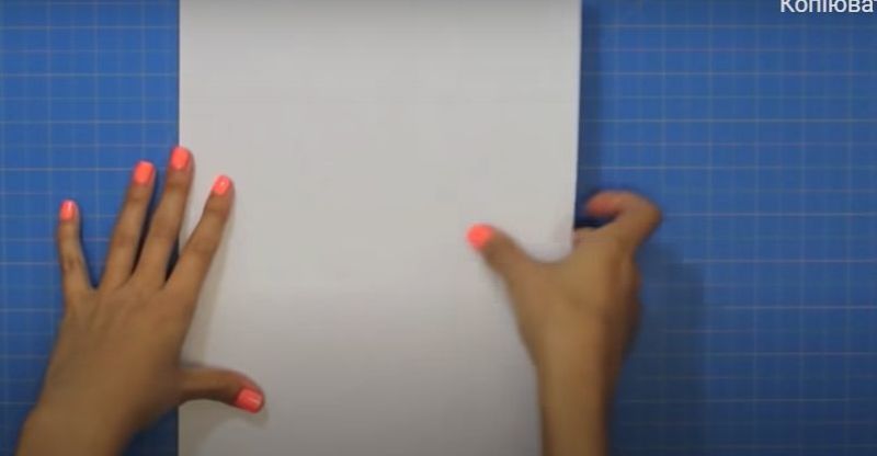 - Поставете листа пред себе си хоризонтално и го сгънете наполовина вертикално.