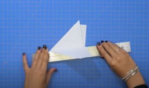 - Сега сгънете горната част надолу и прегънете центъра на Х-образната форма.