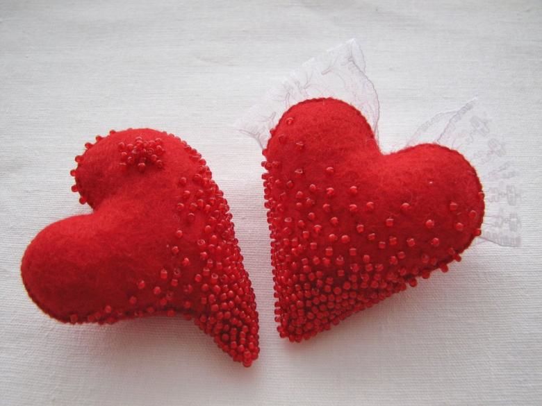 Такова ръчно изработено сърце е уникален подарък, прекрасна декорация не само за интериора, но и за дрехите, интересна играчка за коледната елха или просто предмет за украса.