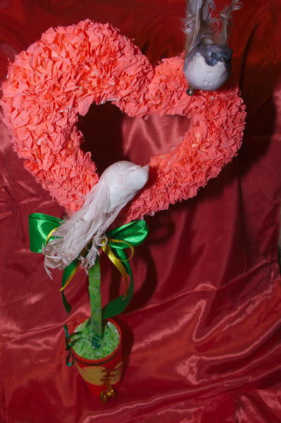 С малко материали и инструменти можете да създадете великолепна миниатюрна композиция под формата на сърце, своеобразно дърво на щастието. Не е трудно да се направи, но изисква концентрация и внимание. По-добре е да създадете такава фигура с децата.