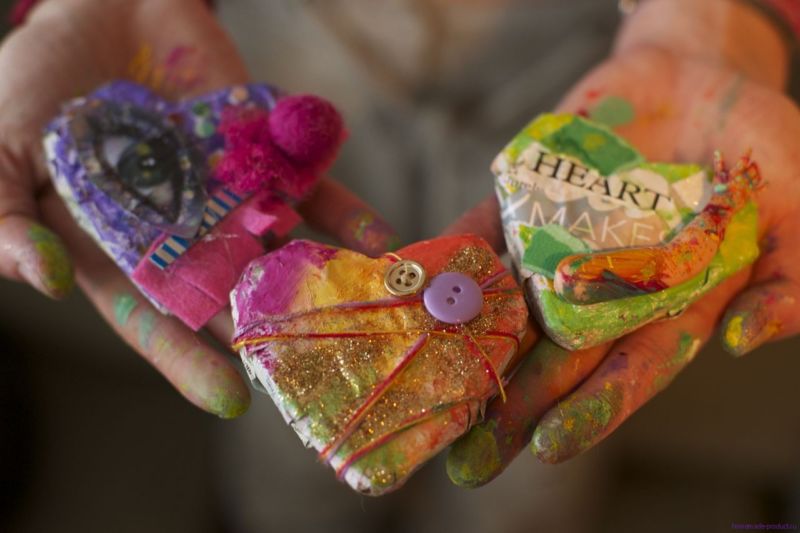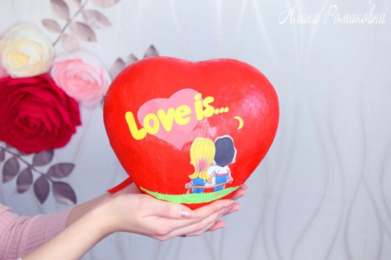 Сърцето от папие-маше също може да се изработи с деца, но на малко по-голяма възраст. Такъв подарък ще зарадва учителката в детската градина, тъй като ще демонстрира цветно отношението на детето.