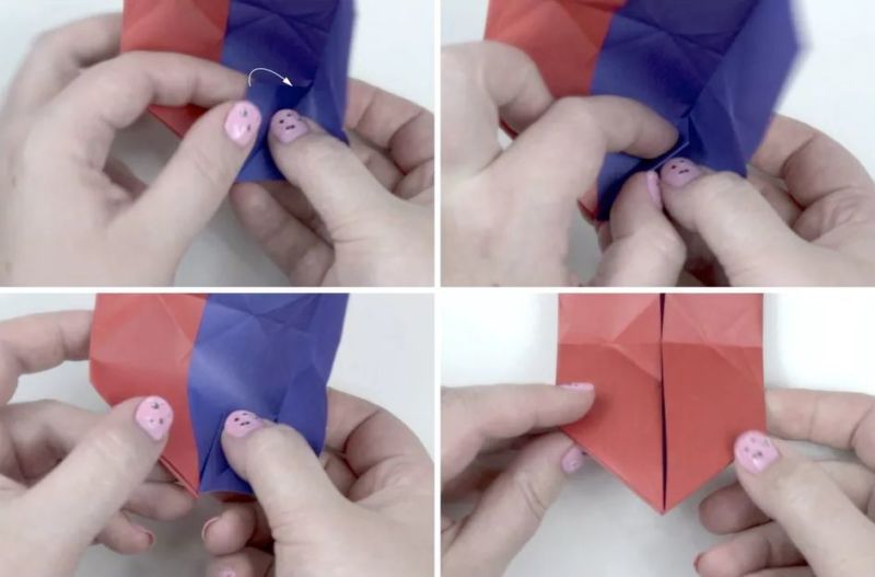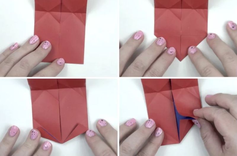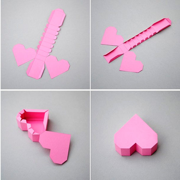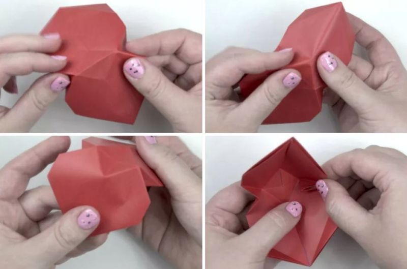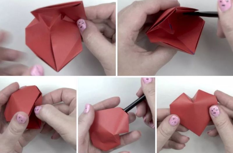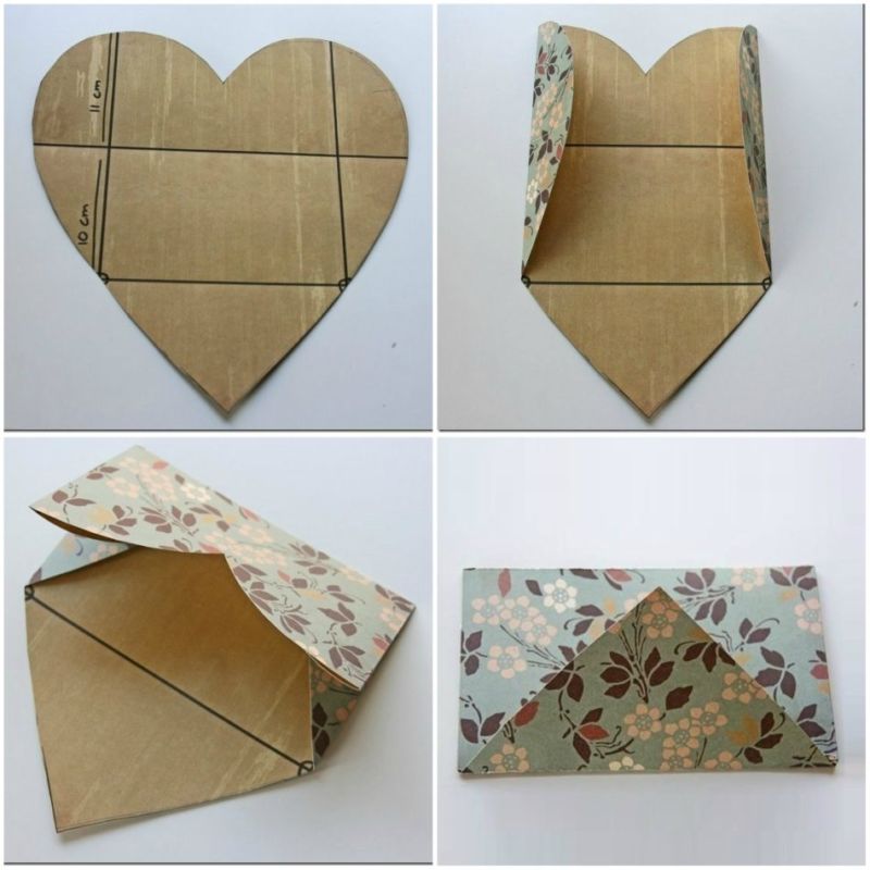 Затова трябва да вземете квадратен лист хартия със страна два пъти по-дълга от сърцето. С помощта на определен модел на сгъване можете да направите сърце, с което да украсите опаковката на подаръка си.
