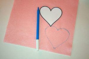 - Поставете частите на цветето върху сърцето и ги очертайте с молив.