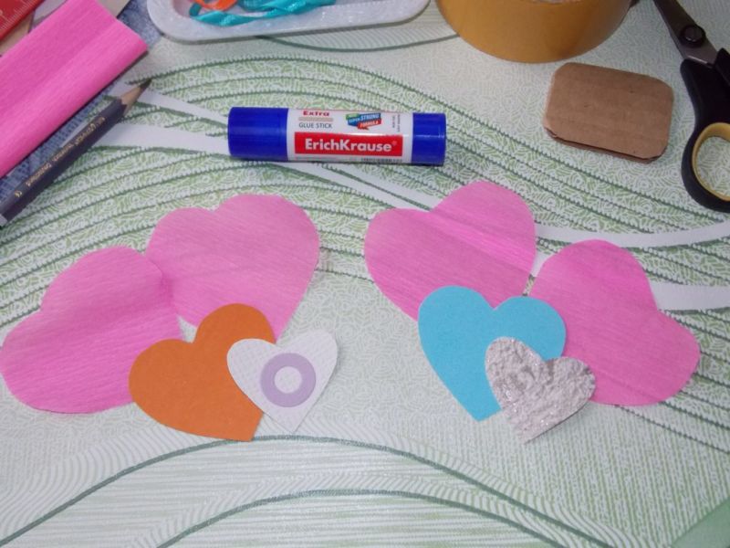 - Изрежете сърца по всякакъв начин (фигурите могат да бъдат с еднакъв или различен размер);