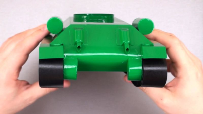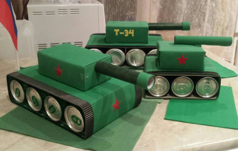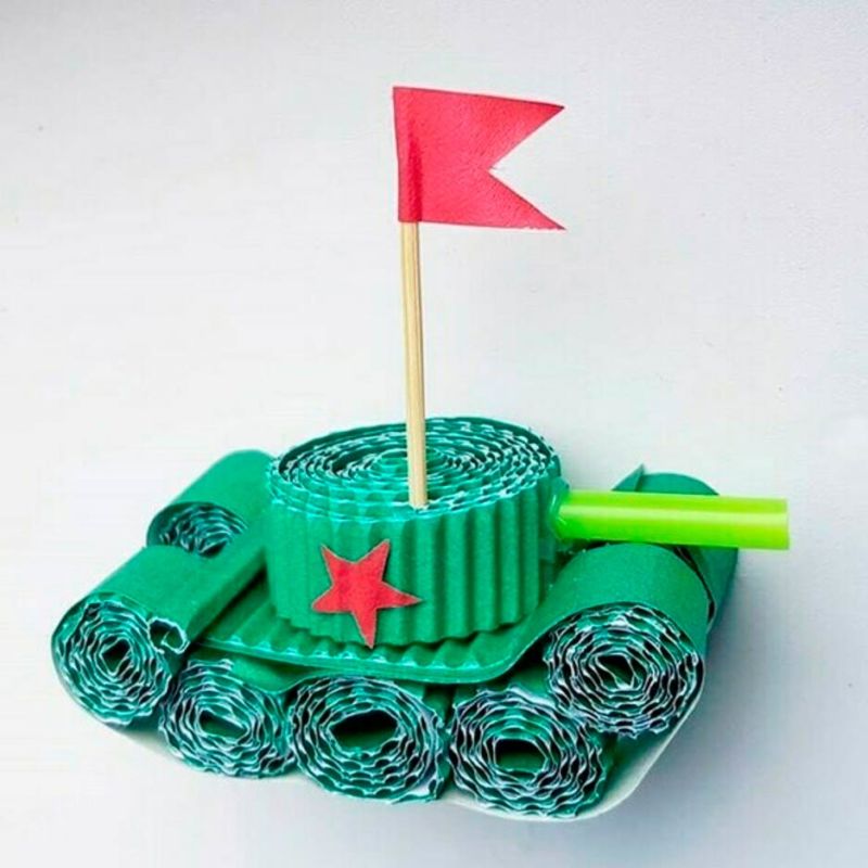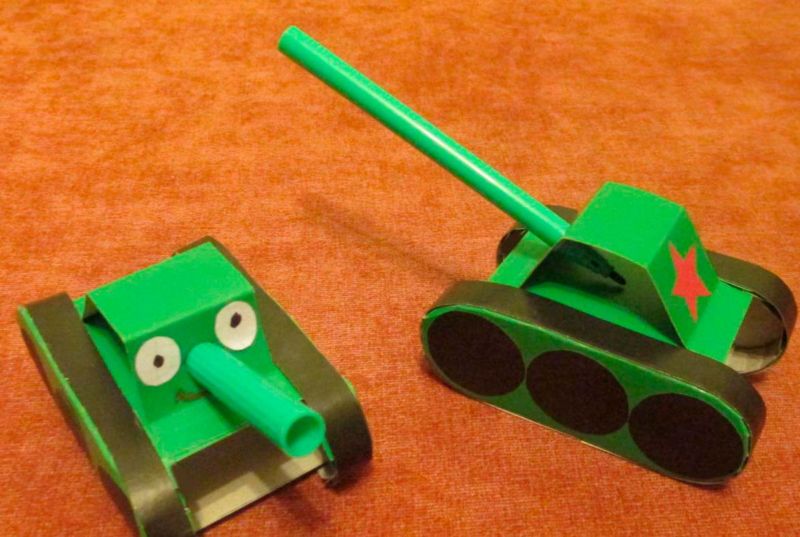 Един от най-популярните занаяти за Деня на защитника на отечеството или Деня на победата е танкът. В допълнение към хартията, картонът е достъпен и лесен материал.