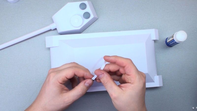 - Залепете светлозелената палитра към кутията и тръбата;