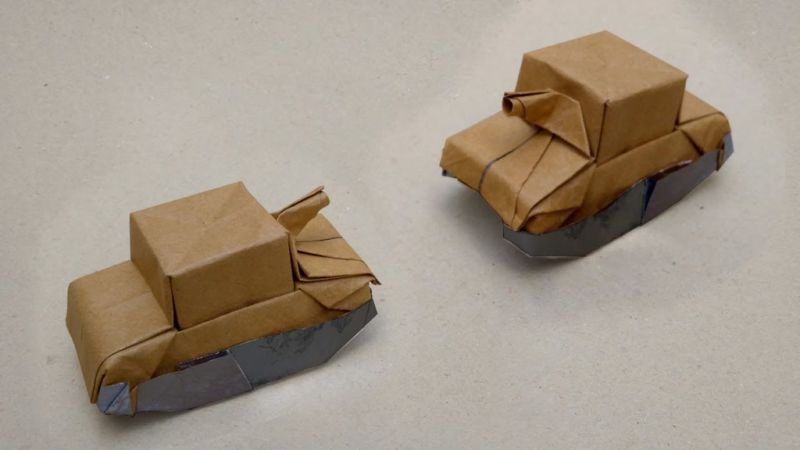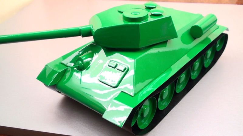 Първо, нека разгледаме най-простите идеи. Нека анализираме схемата за създаване на известния танк Т-34 от хартия.