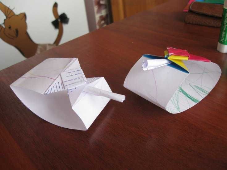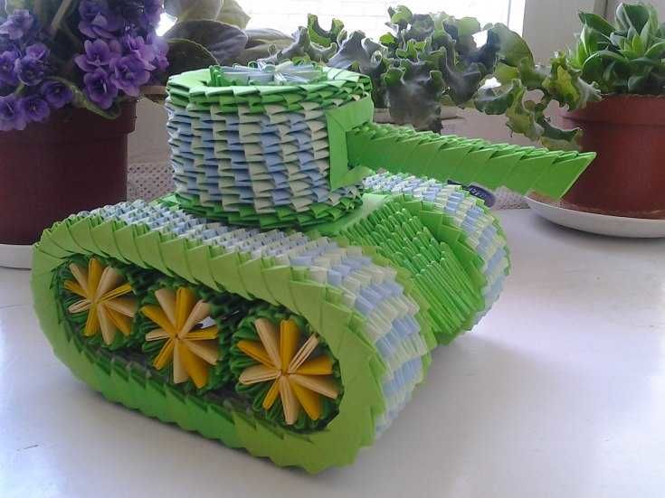 Най-простият вариант е занаят, направен от хартия. Ще анализираме как да направим резервоар оригами.