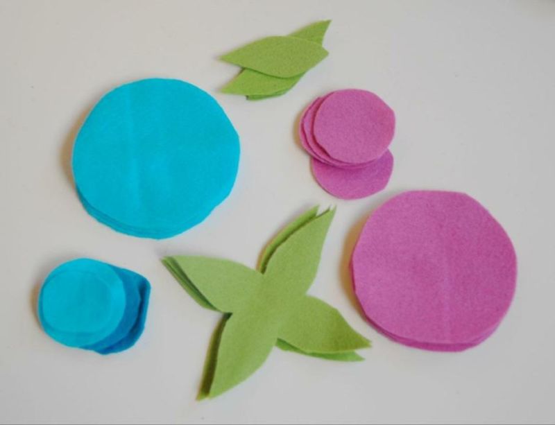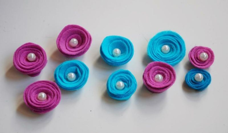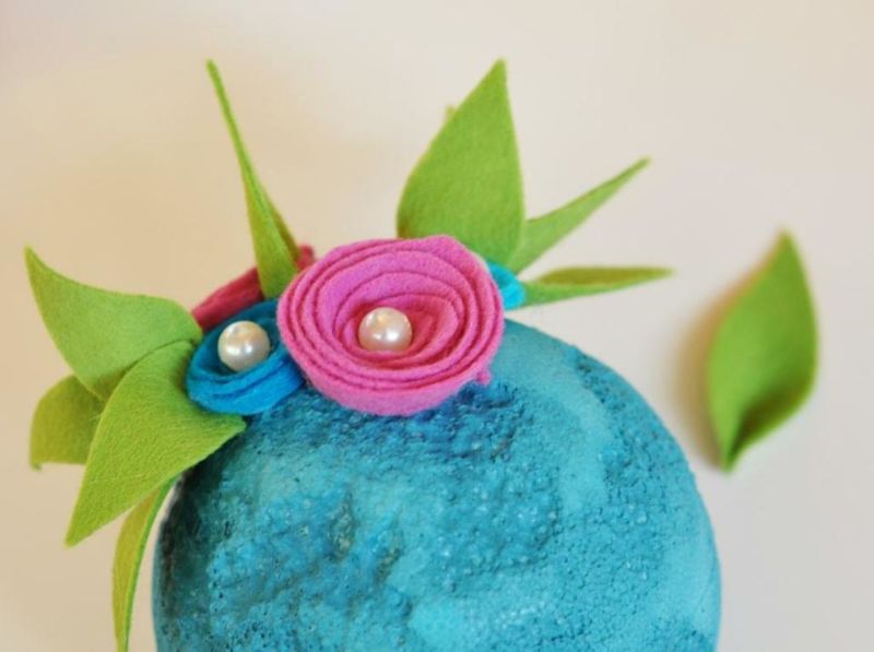 - Цветята играят ключова роля. Не е лесно да ги направите, тъй като филцът не е толкова обемен. Техниката може да бъде намерена на свободен достъп.