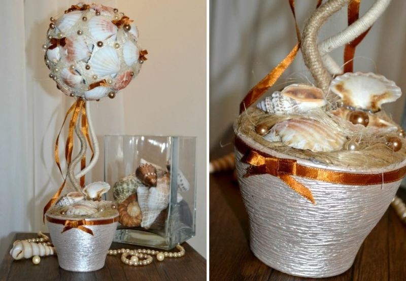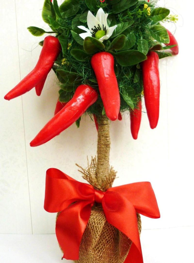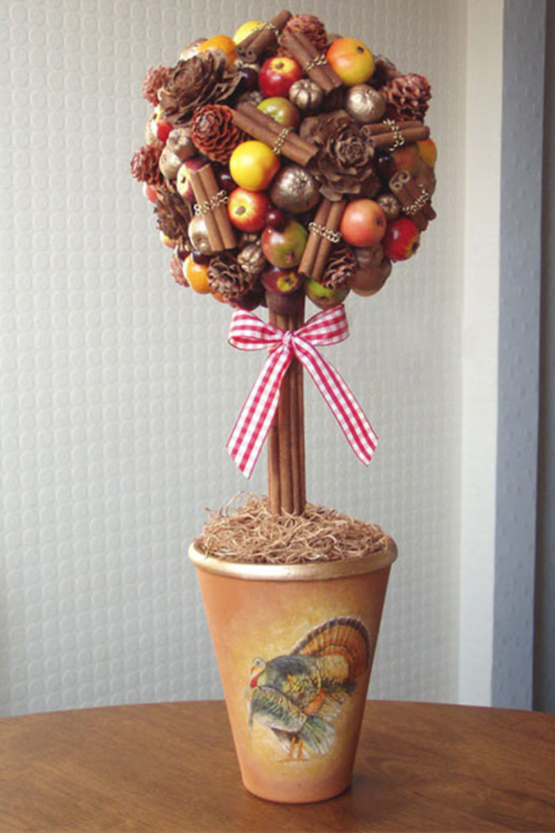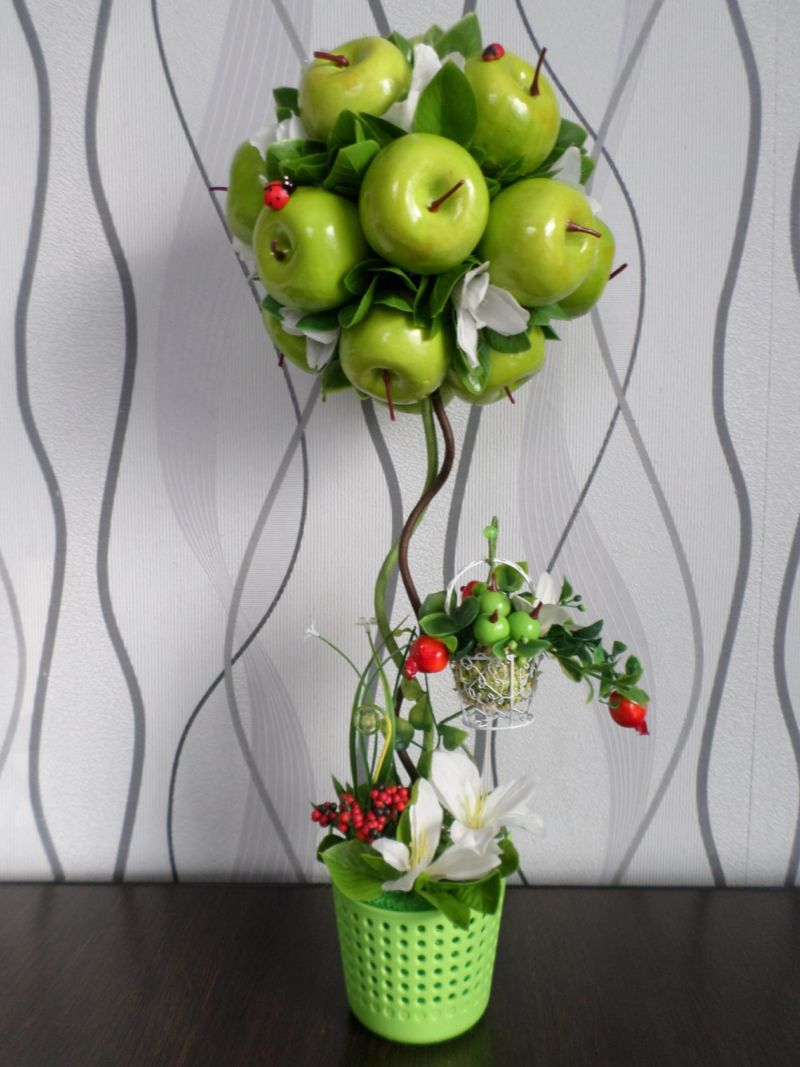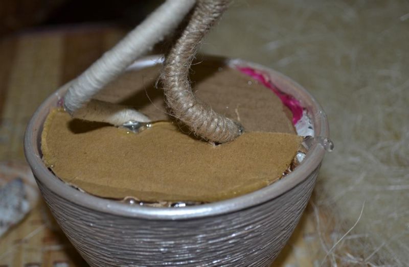 Недостатъкът е, че такава занаятчийска работа не може да издържи дълго време. Въпреки това може да се използва като украса за празнична трапеза. Как да направите рамка за топиар - използвайте гипс или пясък.