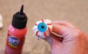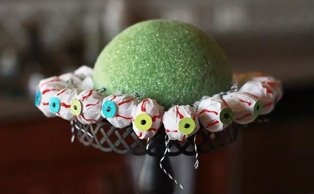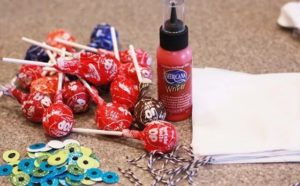 - След това всеки бонбон се покрива с горещо лепило отдолу и се поставя върху основата.