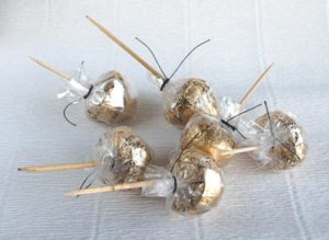 - Обърнете специално внимание на избора на лакомство, защото обикновените дълги карамели не са подходящи. Необходимо е да вземете шоколад, декориран в ярка опаковка, за предпочитане с триъгълна форма.