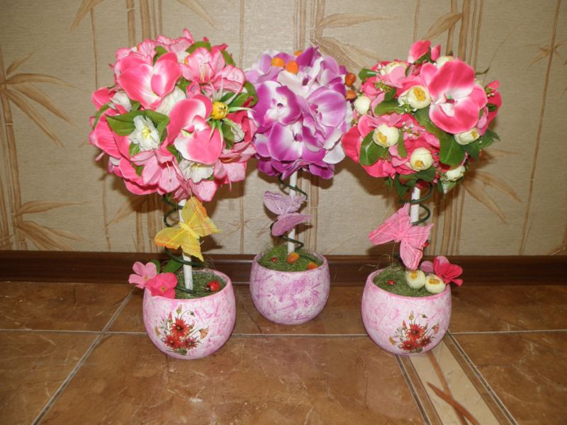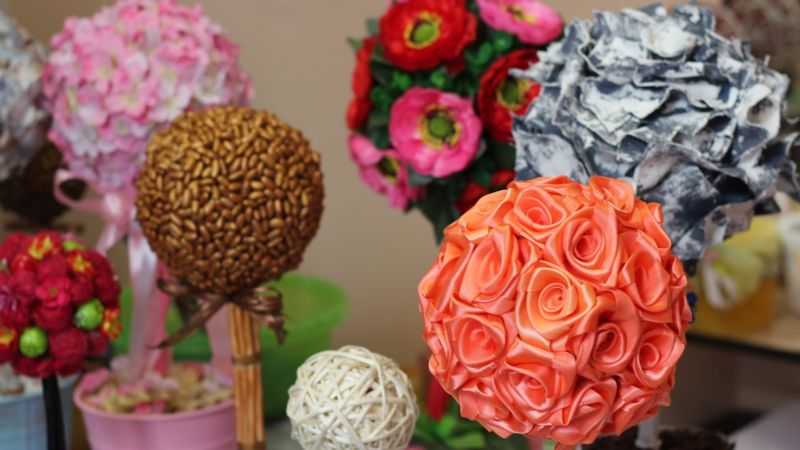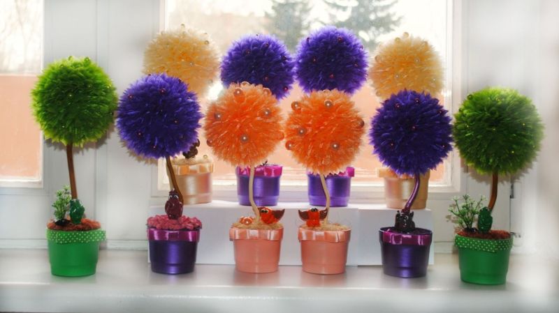 Как да си направим топиари - лесни семинари-класове от хартия, салфетки, сатенени панделки и други материали (112 снимки)