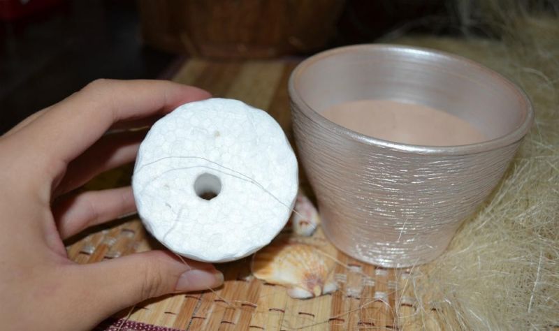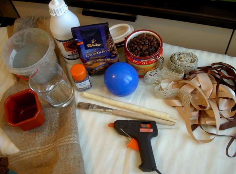 - Оригиналната декорация за масата е добре да се направи върху основа от пенопласт. В този случай топката за кафе ще изглежда красива от естетическа гледна точка.