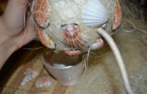 - Не е възможно да се намерят черупки с еднакъв размер. Затова за основата трябва да направите фигура от пяна с произволна форма.