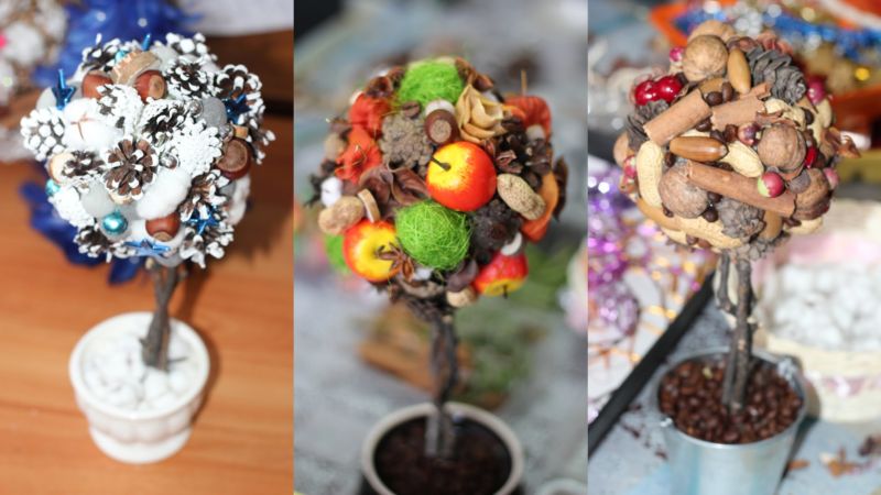 Преди да започнете да изработвате топиари за празниците, е препоръчително да научите всички нюанси и подробности. Много занаятчии разполагат с професионални инструменти - четки, бои, различни крепежни елементи и клещи за части.