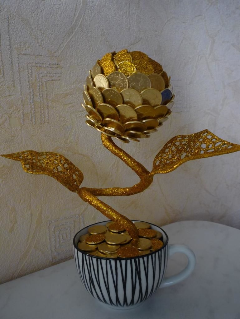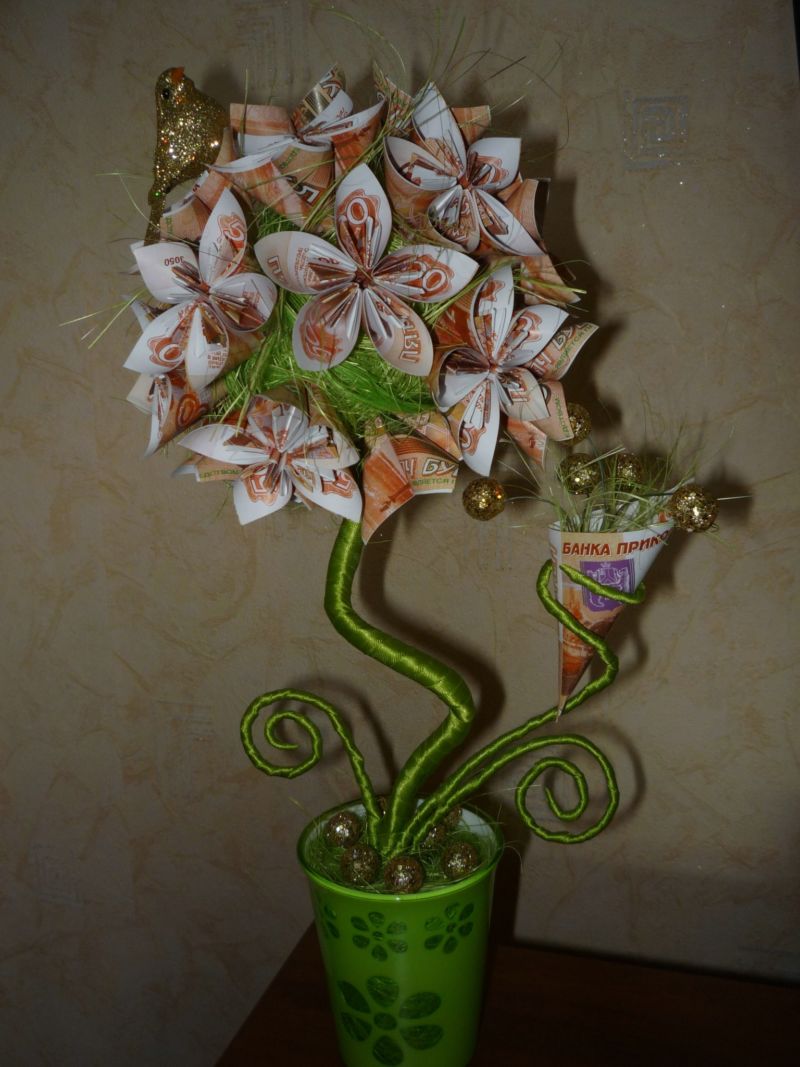 Приятно занимание за тези, които искат да добавят символика към интериора на къщата или да направят необичаен подарък. Можете да използвате както истински, така и фалшиви пари, които можете да закупите от всеки магазин за трикове. Майсторски клас за създаване на дърво на парите: