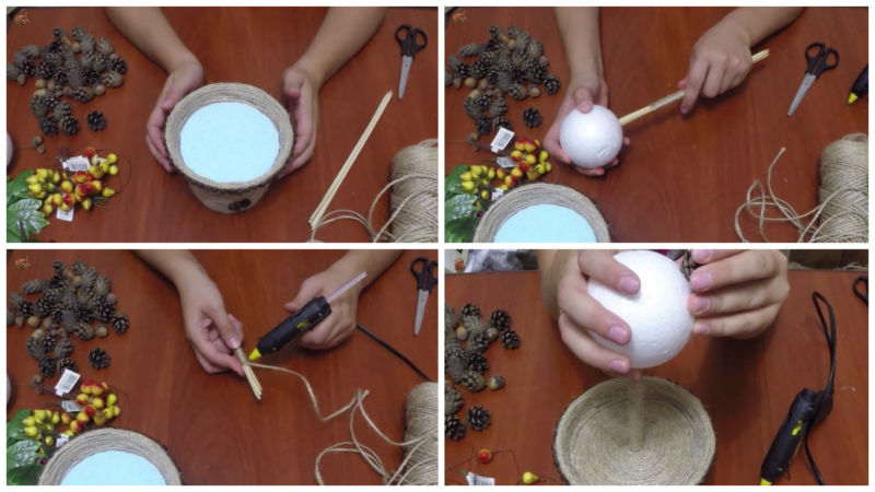 - За основа може да се използва обикновена топка от пяна. Това е класическа версия, при която багажникът и други компоненти могат да бъдат прикрепени.