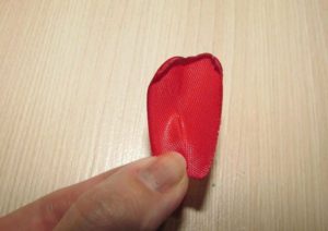 - Залепете венчелистчетата, лентички, към основата на планирания бутон с тиксо;