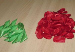 - Свържете всички подготвени части стъпка по стъпка. Четири венчелистчета - пъпка, стъбло - листа.