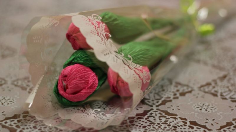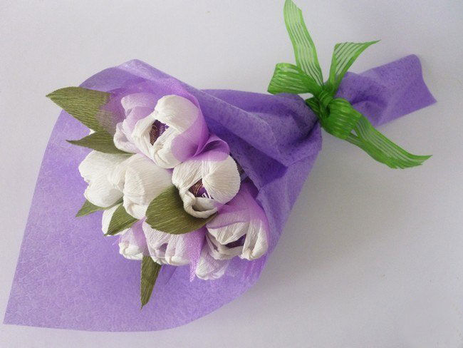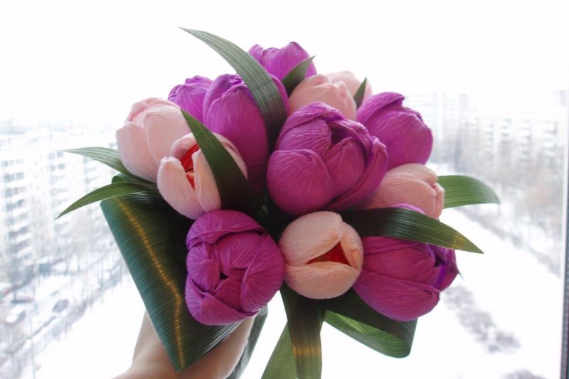 Воала, лалето е готово. Сега можете да украсите букета си по какъвто начин пожелаете.