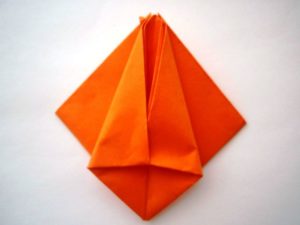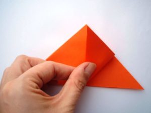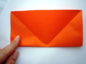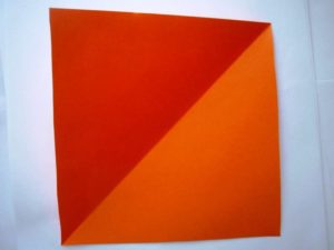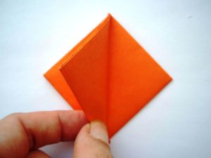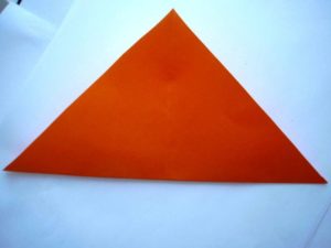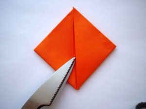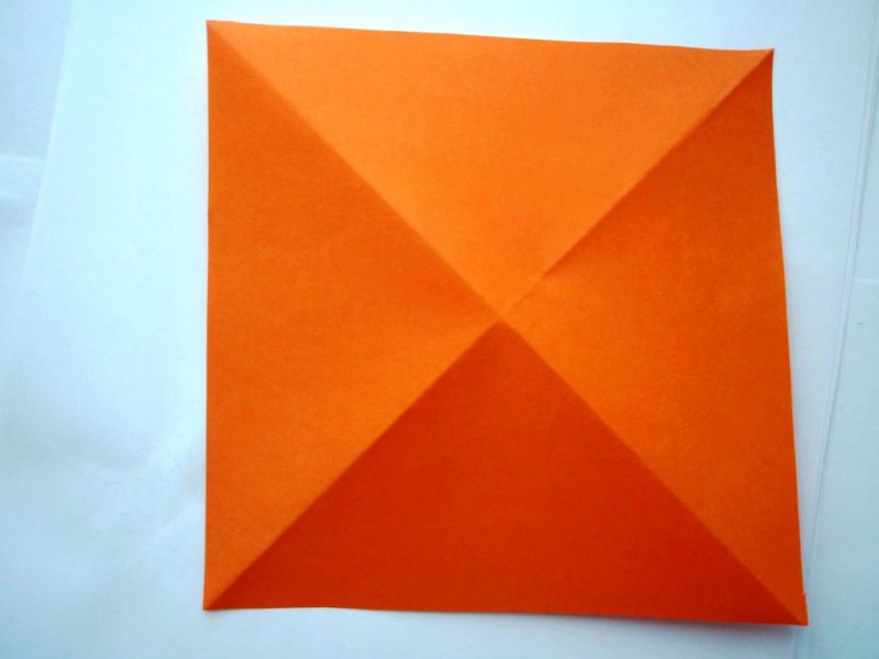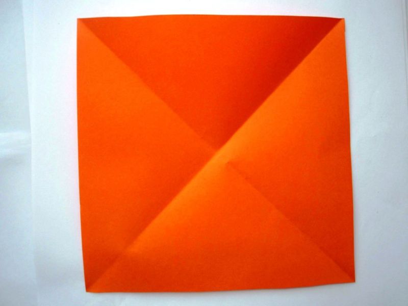 - Текущата хартия е сгъната наполовина. По-добре е форматът да е А4, тъй като това ще ви позволи да се разпрострете в процеса на създаване. Сгъваме го по диагонал, огъваме го и отрязваме излишното. В резултат на това се получава квадрат;