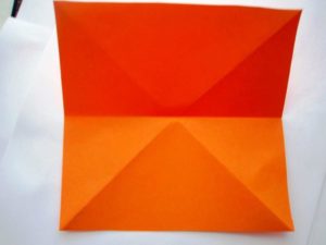 - Разгънете листовката. На този етап от създаването трябва да имате поне осем триъгълника;