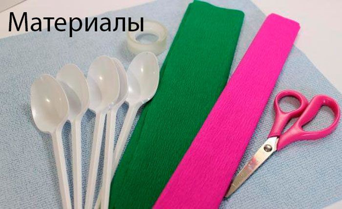 - Навийте парчетата на руло и ги закрепете с тиксо. Залепете парчето към лъжицата.