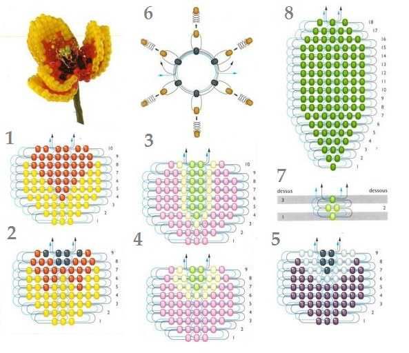 Нека разгледаме създаването на лале с мъниста на основата на брошка.