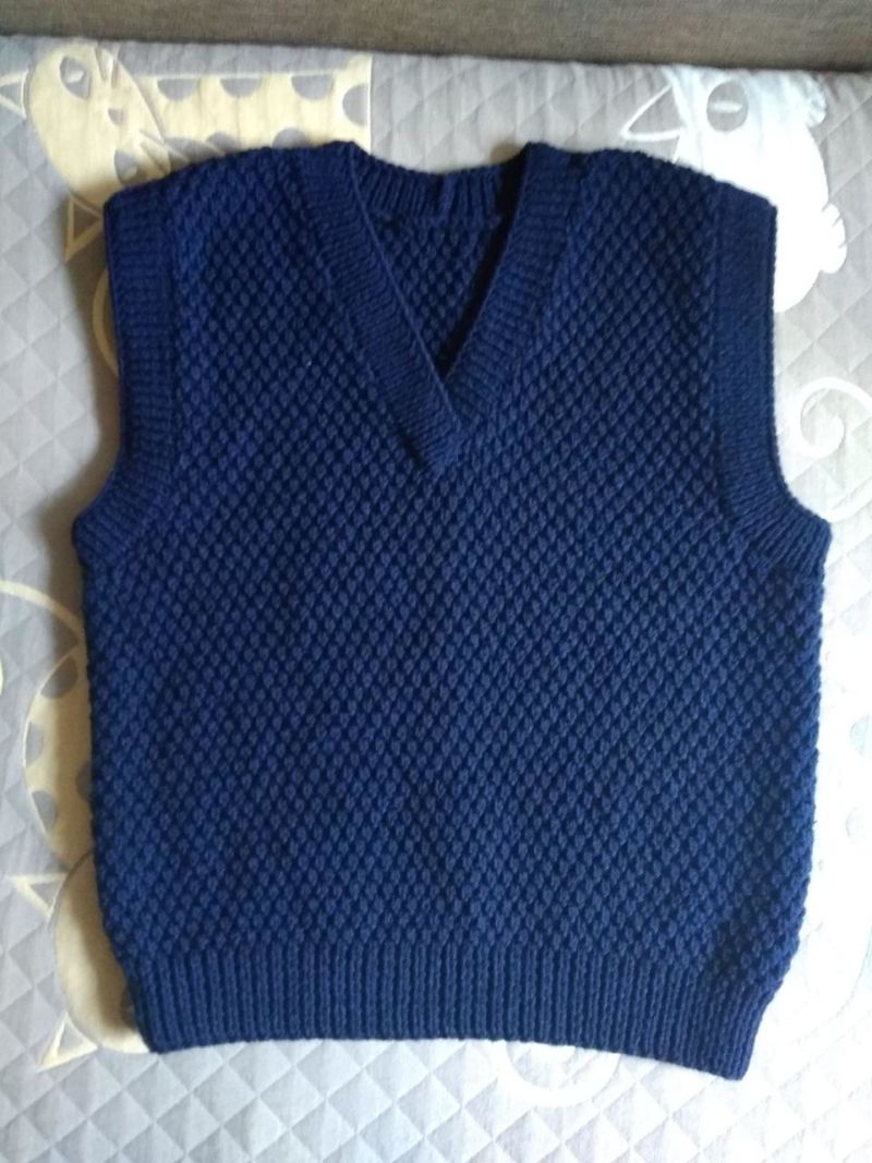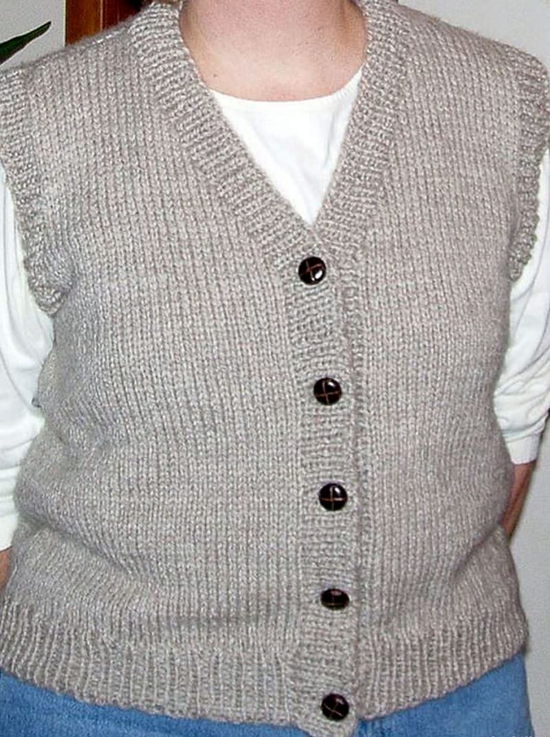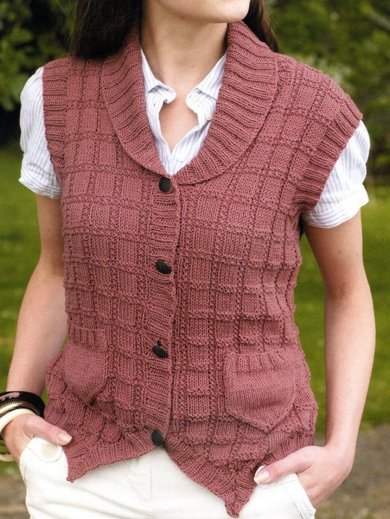 С техниката на плетене на прав път може да се изработи както дамска, така и мъжка жилетка.