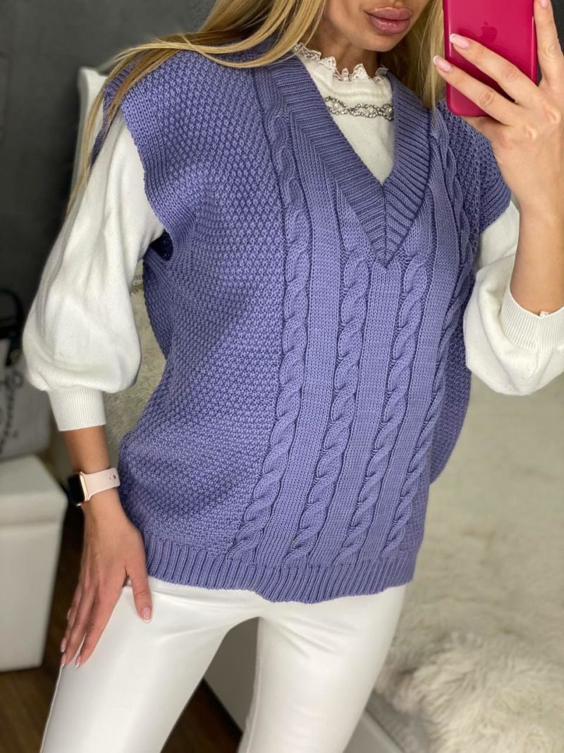 Плетено яке без ръкави на една кука