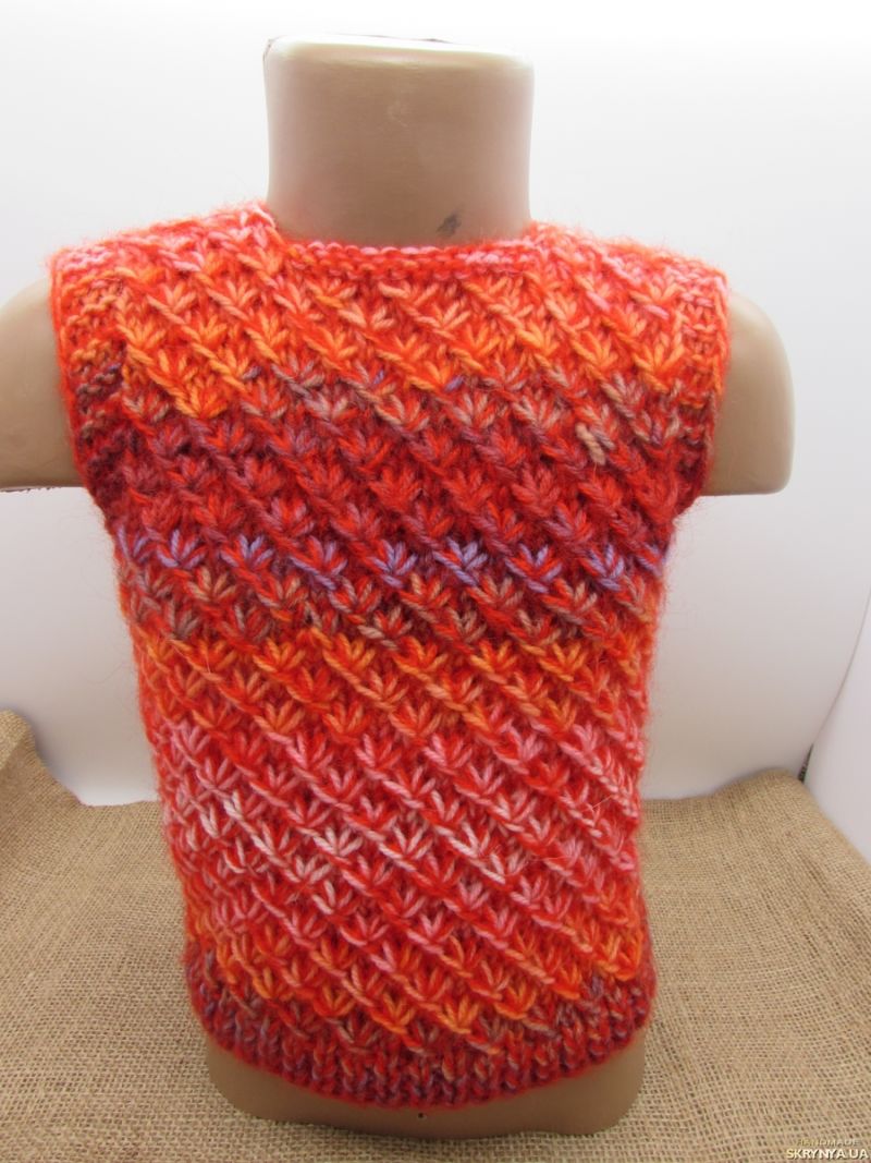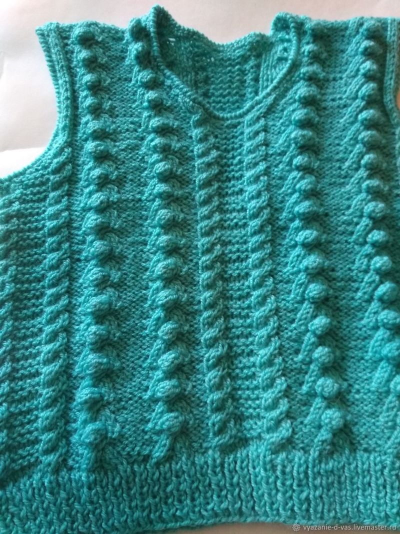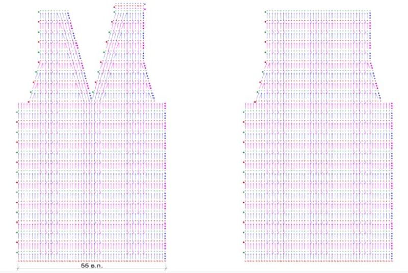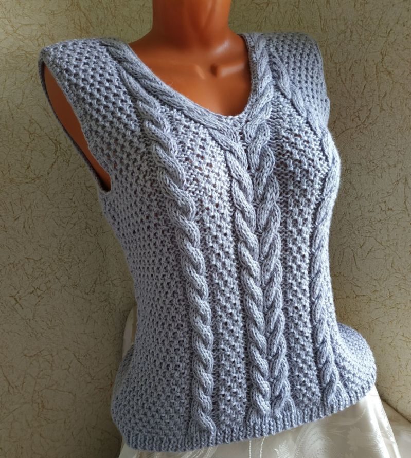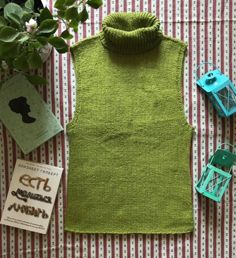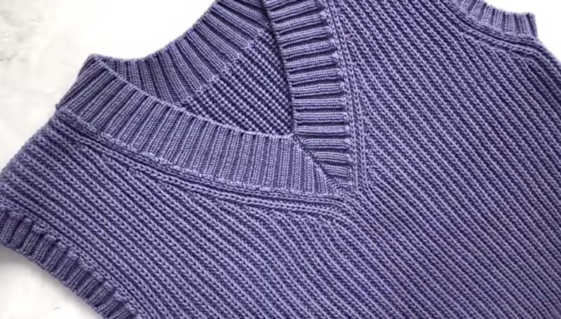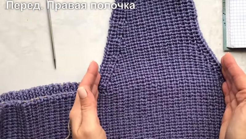 Подходът за всички такива продукти е един и същ, но малко по-различен плетен рафт на такова яке без ръкави. Те се плетат успоредно от началото на работата, така че да бъдат напълно еднакви. Използват се две вътъка и чифт игли.
