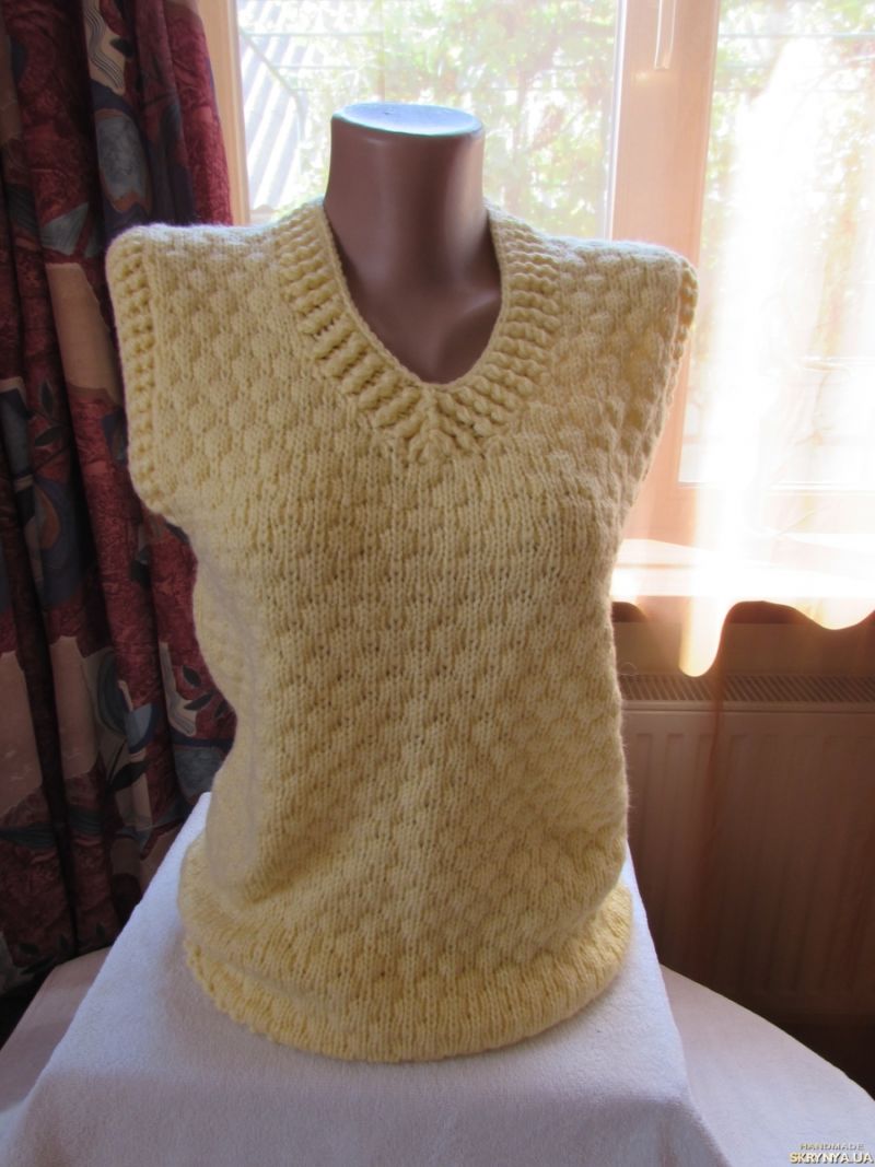 Дамско яке без ръкави може да бъде плетено на една кука по модел. За конструкцията на модела вече споменахме по-горе.