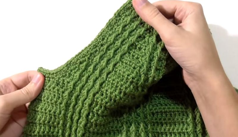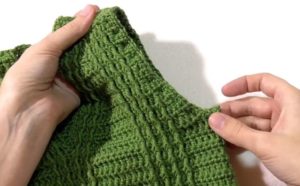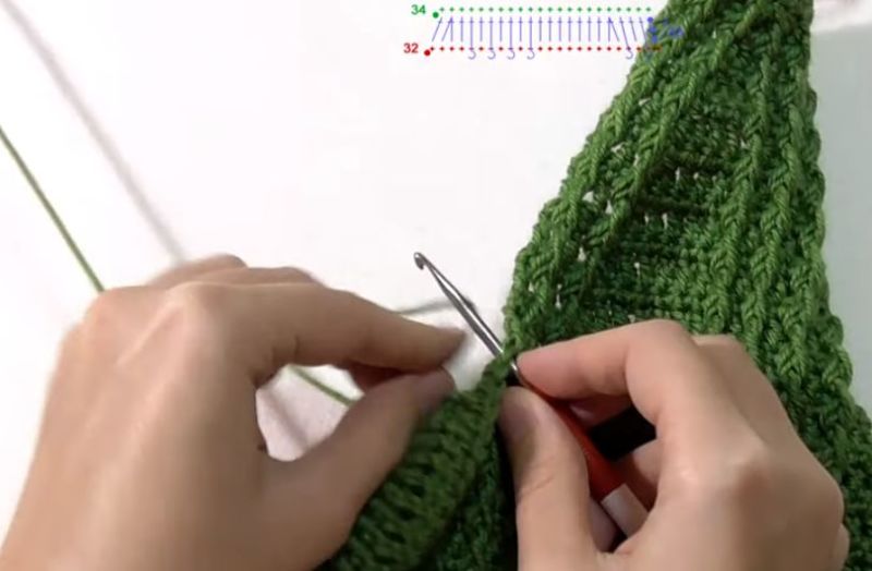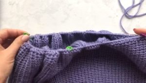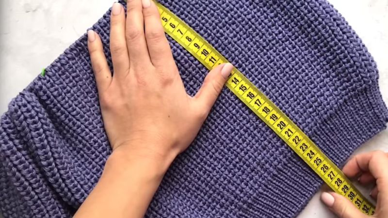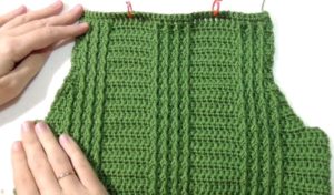 За модел с отделно плетен подгъв, при изчислението вземете предвид 3 cm от подгъва: Броят на бримките, равен на половината бримки от гърба, се намалява с четири. Подгъвът ще бъде завършен след сглобяването или пришит.