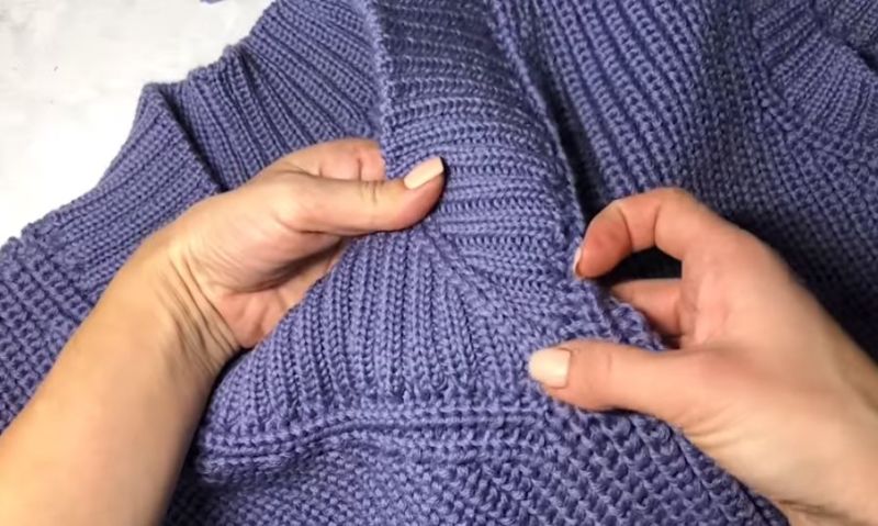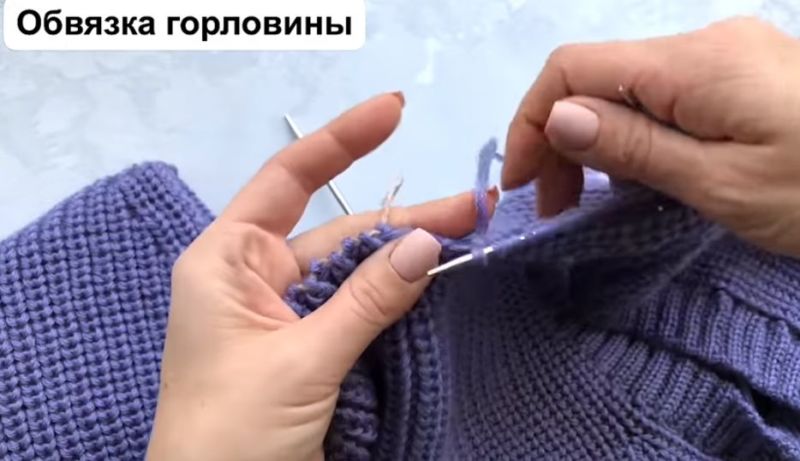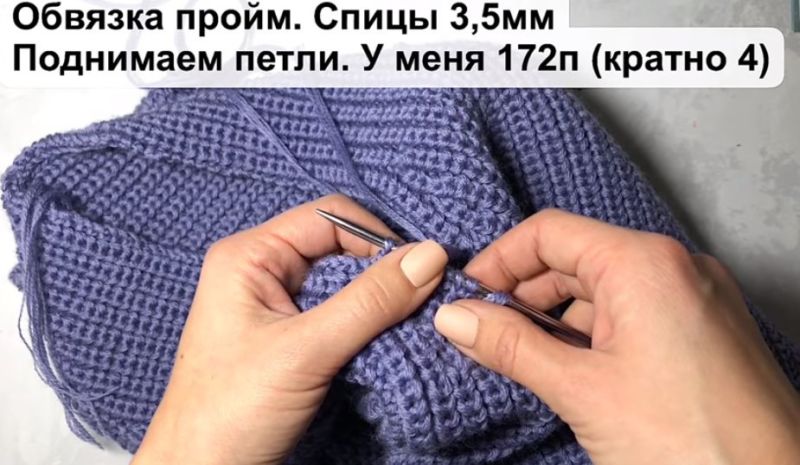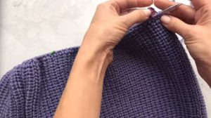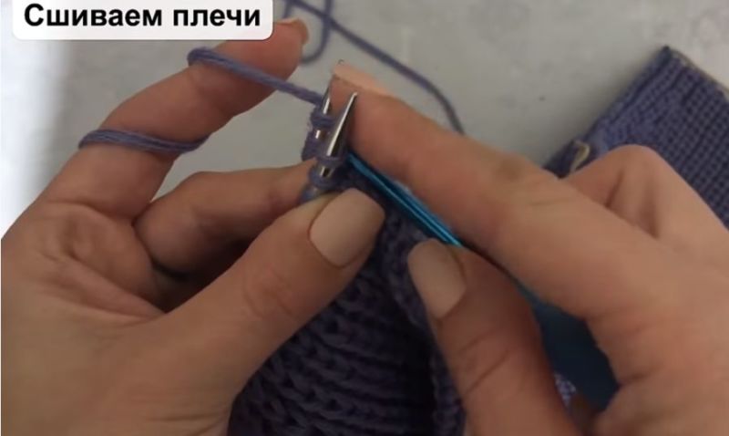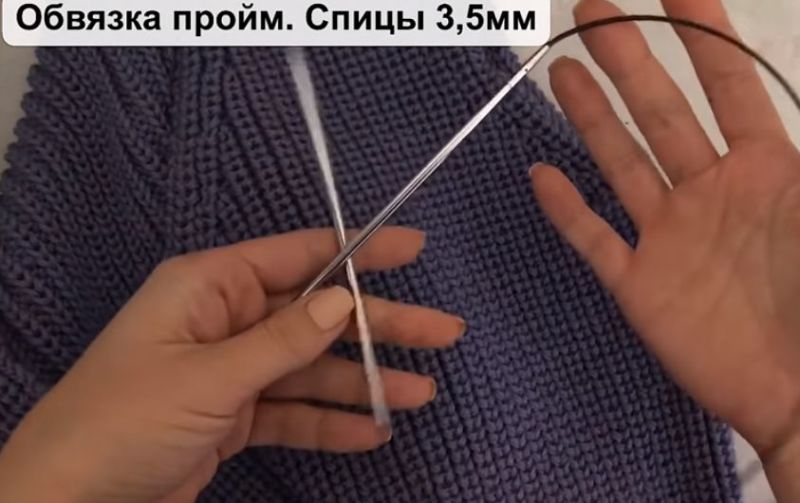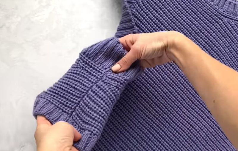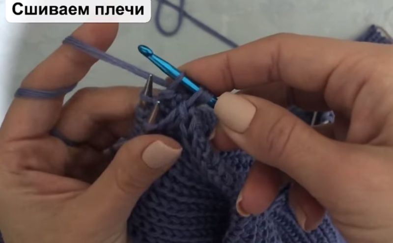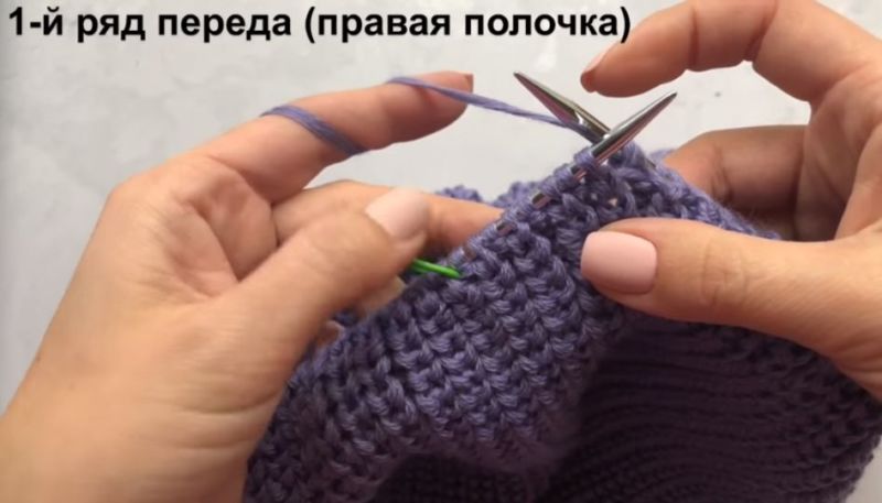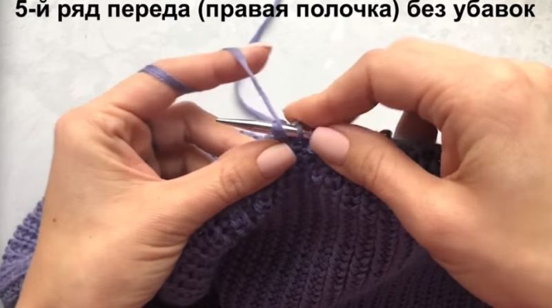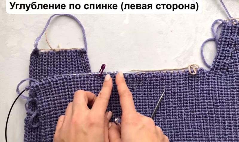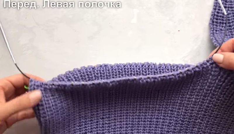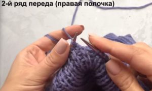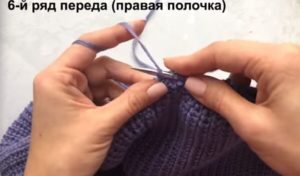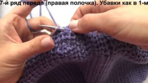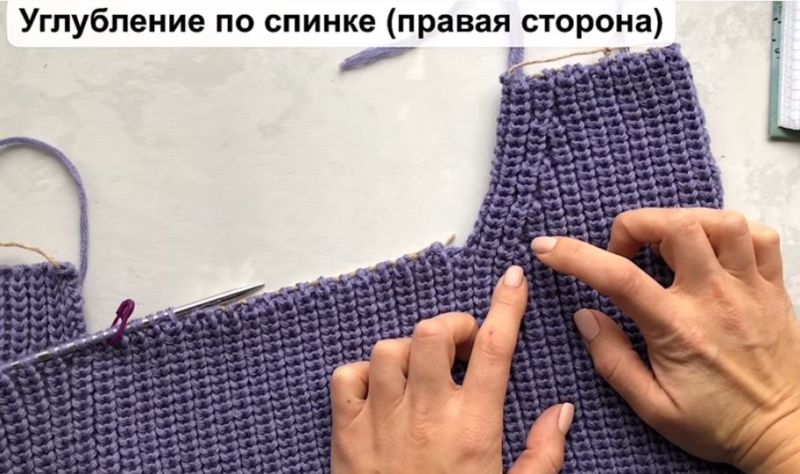 На височината на ръкавната извивка направете разхлабването: на ръба на ръба или вътрешно. Два сантиметра преди края изплетете кълчище и извивка на рамото.