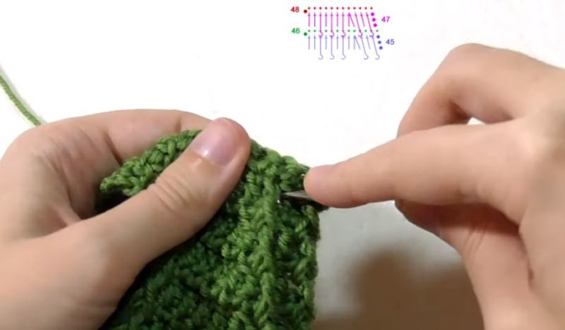 Наберете желания брой шевове плюс крайните шевове. Крайните шевове са помощни и се скриват в шева, когато се зашиват. Те не са част от модела, а са допълнително зашити и изплетени по специален начин.