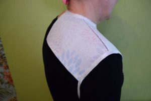 Шевовете на деколтето са симетрични. Когато достигнете нивото на раменете, започнете с контрахиране по същия начин, както при гърба.