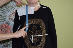 Обиколката на шията е вторична мярка, необходима само за моделите с голямо деколте. По-лесно е да се получи правилната дълбочина на отвора за ръка от тениска или потник, ако нямате опит в изработването на модели.
