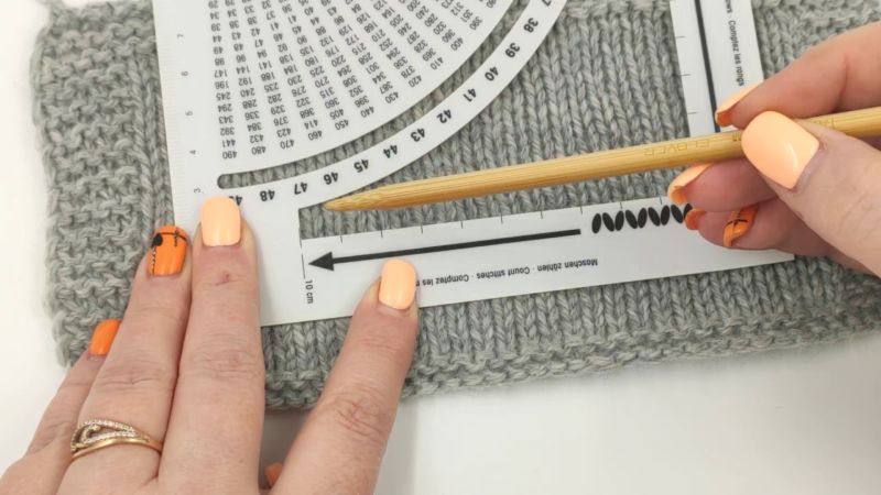Гъстотата се определя от това колко примки или шевове са разположени на 10 см от изделието. Умножете тази цифра по резултатите от измерването, за да получите точния брой контури.
