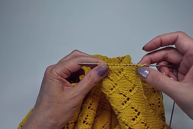 Важно! Не бъркайте редуването на частите на общата игла, преди да изплетете рагана - дясна страна, десен ръкав, гръб, ляв ръкав, лява страна (всички обърнати в правилната посока). След това използвайте стандартен или декоративен реглан шев за шева на реглан ръкава. В декоративните раганови ленти маркирайте лентите с щифтове, за да не се събират.