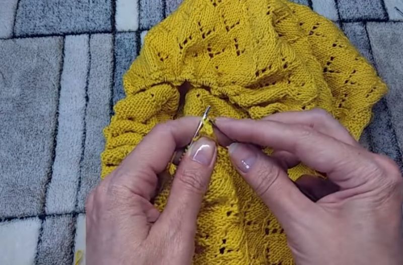 Важно е да се помисли за "израстъка" или няколко допълнителни реда в задната част на врата, така че нещото да не се отдръпне, а отпред да не се събере бръчка на врата. Ето защо този метод често се използва от опитни занаятчии с известен опит.