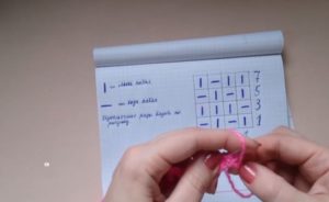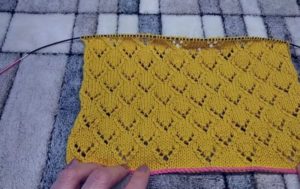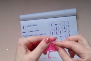 Всяко плетене започва с мостра - парче с размери около 10х10 см. Тя се плете в съответствие с рапорта на модела (повтарящи се фрагменти), ако това е предвидено в схемата.