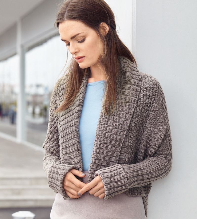 За бързо плетене на болеро използвайте текстурирана прежда и дебели игли. Изделието ще изглежда добре благодарение на ефектната прежда, която ще скрие неравните редове и несъвършенствата на прилягането.