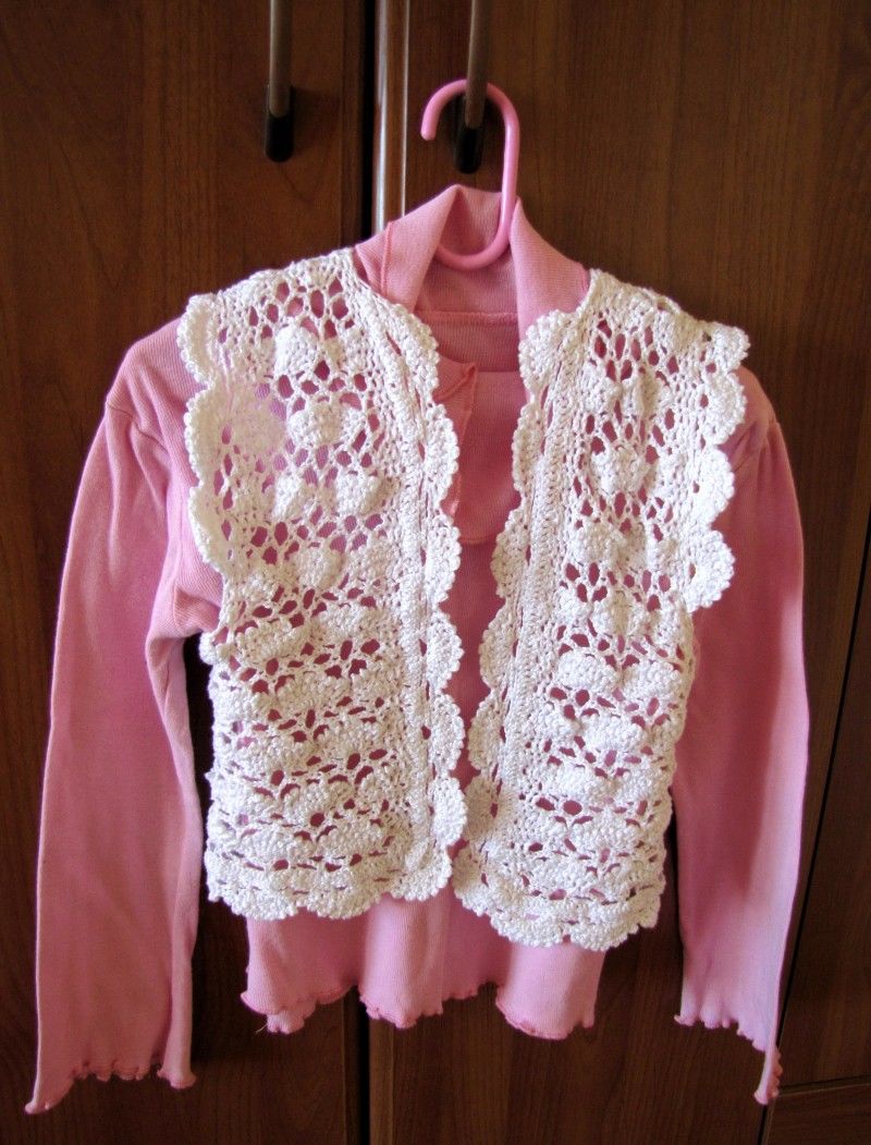 Децата не знаят дали това е модерно, или не, но обичат да носят красиви неща. Детската лятна блуза може да бъде заменена с ефектно ажурно болеро в "лалета" на басмата.