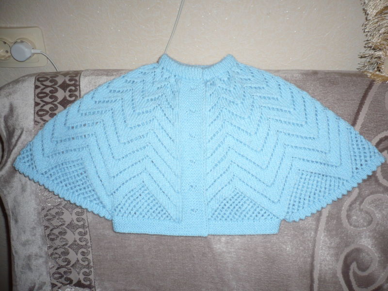 Болеро с реглан, изпълнено отдолу, може да бъде с шевове по наклонената линия или без шевове. Изпълнява се много просто - след изпълнение на модела в подмишниците, всички детайли се прехвърлят на иглите с гъвкава връзка.